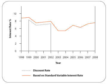 Your monthly payments can still go up or down when the lender chooses, but you get a discount on the lender's standard variable rate for a set period of time. Normally you find that the shorter the discount period the cheaper the rate gets. At the end of the discounted period, you usually change over to the lender’s standard variable rate. |